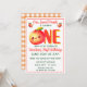 Celebra un momento especial con esta adorable invitación de cumpleaños con tema de frutas. El diseño presenta un encantador personaje de durazno kawaii combinado con suaves acentos florales de acuarela y tipografía audaz y juguetona. Esta invitación es perfecta para padres que planean una fiesta de cumpleaños temática "Sweet Peach" para su pequeña.