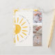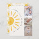 invitación de cumpleaños moderna y elegante con acuarela amarilla del sol para el primer cumpleaños de Sunshine con varias fotos.