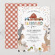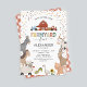 Divertidas invitaciones de cumpleaños para niños con un simple fondo blanco, adorables animales de granja como una vaca, cabra, cerdo, oveja, burro, caballo, conejo, pato y un gallo, y una plantilla de celebración de cumpleaños infantil fácil de personalizar.