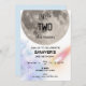 Esta Invitación de cumpleaños Dos a la Luna es muy linda para un niño que cumple dos años con una fiesta de cumpleaños con tema de espacio exterior. Cuenta con un juego con la canción "Fly Me To The Moon" de Frank Sinatra y Count Basie con hermosas gráficas de espacio exterior coloreadas de una estrella fugaz y arte de galaxia. Personalizable según tus necesidades.