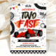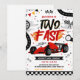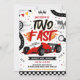 ¡Abróchense los cinturones! Tu pequeño está cumpliendo dos años. Esta invitación de cumpleaños de coche de carreras 'Dos rápido' cuenta con gráficos de carreras elegantes y colores vibrantes, perfecto para una celebración de alta velocidad. ¡Prepárense para arrancar los motores!