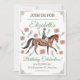 Celebra tu día especial con esta Invitación de Cumpleaños Ecuestre, que presenta un hermoso diseño de caballo y jinete en acuarela perfecto para una celebración con tema de caballos. Con su estilo suave y elegante y su clásico toque ecuestre, esta invitación establece el tono para una fiesta elegante y memorable.