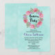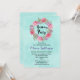 Una bonita y elegante invitación de cumpleaños. Una hermosa ilustración temática botánica con una corona circular de hermosas flores de acuarela en rosa y púrpura con hojas verdes entre ellas. El diseño floral está compuesto por peonías rosas y anémonas púrpuras. El fondo es una textura suave de acuarela verde menta.