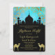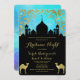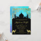 Invitación de fiesta temática de Las mil y una noches en azul turquesa y dorado. Perfecta para cumpleaños de cualquier edad, sweet sixteen o Quinceañera