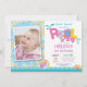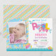 Invitación de cumpleaños para fiesta en la piscina con foto personalizada. Salpicaduras de verano. Invitación para fiesta de cumpleaños de niña. Pelota de playa. Natación. Traje de baño. Fiesta de cumpleaños. Rayas rosadas, púrpuras, lavandas, violetas, amarillas, naranjas y azules. Fondo blanco. 1er Primer cumpleaños. 1º 2º 3º 4º 5º 6º 7º 8º 9º 10º 11º 12º 13º 14º 15º, cualquier edad. Digital imprimible. Para una personalización adicional, por favor haga clic en el botón "Personalizar" y use nuestra herramienta de diseño para modificar esta plantilla.