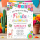Convierte tu celebración en una verdadera fiesta con esta vibrante Invitación de cumpleaños Fiesta. Diseñada con elementos coloridos inspirados en México, esta invitación editable es perfecta para cumpleaños llenos de tacos, música y diversión.