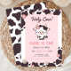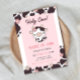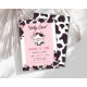 ¡Prepárate para celebrar con nuestra invitación al cumpleaños de la vaca! Mostrando a una vaca dulce con un fondo rosado, esta invitación se acentúa con manchas de vacas y margaritas. El texto del personalizable le permite personalizar todos los detalles del fiesta, lo que lo convierte en la elección perfecta para el día especial de su pequeño.