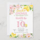 Ilumina tu celebración con esta alegre invitación de cumpleaños floral y de limón. Con limones y flores rosadas de acuarela, este diseño trae un ambiente fresco y veraniego perfecto para cumpleaños de niños o reuniones de verano. La disposición juguetona destaca los detalles de tu evento mientras crea un recuerdo elegante para los invitados. Personaliza fácilmente para que coincida con el tema de tu fiesta y haz que tu celebración sea inolvidable.