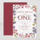 Celebre el especial hito de su pequeño con esta hermosamente diseñada invitación de cumpleaños floral primero. Con un delicado borde floral de acuarela rosa y púrpura, este diseño elegante es perfecto para crear una celebración memorable y con estilo. La tipografía clásica añade un toque atemporal, lo que la hace ideal para fiestas de jardín, fiestas de té u otros temas de cumpleaños elegantes.