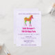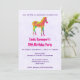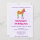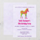 Una invitación de cumpleaños genial y funky. Tema: ¡Fiesta de cumpleaños psicodélica de neón! El diseño se basa en una textura que imita papel de manualidades con una ilustración funky y psicodélica al estilo de los sesenta de un bebé cebra en colores neón de amarillo brillante, rosa intenso y verde menta. Salvaje y divertido con un toque artístico creativo.