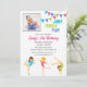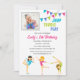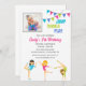 Gimnasia en la invitación azul, rosa y verde a la fiesta de cumpleaños. Tarjeta fotográfica