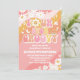 ¡Celebra el día especial de tus pequeños con esta invitación de cumpleaños retro y divertida! Con rayas onduladas juguetonas en rosa, naranja y melocotón con margaritas, corazones, mariposas y signos de paz, este diseño captura el espíritu divertido de los 70. Perfecta para fiestas infantiles, esta invitación personalizable agrega un toque colorido y nostálgico mientras mantiene los detalles claros y atractivos. Haz que el cumpleaños de tu hijo sea inolvidable con este vibrante recuerdo inspirado en hippies.