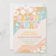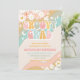 Celebra con estilo con esta invitación de cumpleaños retro con rayas onduladas pastel, margaritas juguetonas, estrellas, corazones y rayos. Perfecta para un primer cumpleaños o cualquier fiesta divertida, este diseño vibrante captura la paz, el amor y el encanto retro. Personaliza con los detalles de tu evento para crear un recuerdo único que tus invitados adorarán. Ideal para celebraciones con tema retro, fiestas hippies o cumpleaños infantiles caprichosos.