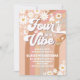 Celebra con estilo con esta invitación de cumpleaños retro con margaritas juguetonas, signos de paz, mariposas, corazones y rayas onduladas pastel. Perfecta para fiestas infantiles, este diseño inspirado en hippies establece un tono alegre con colores vibrantes y detalles caprichosos. Personaliza con el nombre de tu hijo, edad, fecha de la fiesta e información de RSVP para crear un recuerdo único. Ideal para cumpleaños número 4 o cualquier celebración divertida, esta invitación boho trae paz, amor y alegría a tu día especial.