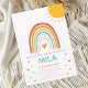 Celebra a tu pequeño rayo de sol con esta brillante y alegre invitación de cumpleaños. Con un diseño juguetón de arcoíris y sol con colores cálidos y felices, esta invitación es perfecta para una fiesta de cumpleaños con tema de sol. Ideal para primeros cumpleaños y más allá, establece el tono para una celebración alegre y llena de amor. Personaliza con los detalles de tu hijo para crear una invitación única que tus invitados adorarán.