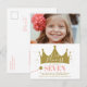 Una caprichosa y linda invitación de cumpleaños para una fiesta de princesa con una corona dorada con estrellas brillantes, varita rayada y texto editable. Resalte el nombre de su pequeña princesa dentro de la corona mágica si lo prefiere con el elemento de varita móvil apuntando a la edad. Viene con parte posterior de patrón coordinado. Haga clic en editar para personalizar la imagen y el texto.