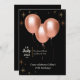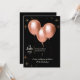 Esta invitación de cumpleaños negra con globos de oro rosa es una opción impresionante y elegante para cualquier celebración de cumpleaños. El fondo de la invitación es un negro profundo y rico, que proporciona un contraste llamativo con los globos de oro rosa y otros acentos que se muestran de manera prominente en la parte frontal. Los globos están dispuestos de manera festiva y celebratoria y están acentuados con cuerdas delicadas, lo que añade un toque de fantasía y diversión a la estética general. El texto de la invitación está escrito de manera elegante y moderna y también es personalizable, lo que te permite agregar tus propios toques personales a la invitación.