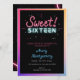 ¡Celebra tu día especial con estilo con nuestra Evite Sweet 16! Nuestro diseño inspirado en neón seguramente hará una declaración con sus tonos rosa y negro. Es la forma perfecta de hacer saber a todos que estás cumpliendo 16 años.