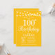 Invitación de cumpleaños número 100 con luces de cuerda. Fondo amarillo. Cumpleaños de hombre o mujer. 13 15 16 18 20 21 30 40 50 60 70 80 90 100, cualquier edad. Para personalizar aún más, haga clic en el botón "Personalizar" y use nuestra herramienta de diseño para modificar esta plantilla.