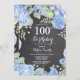 Invitación al cumpleaños número 100 de la Floral Azul Botánica. Invitación de cumpleaños para mujeres a los pueblos rosados florales. Flor floral acuarela. Elegante rosa rosa y flores de peón. Cumpleaños de adultos. Fondo del tablero. Blanco y negro. 13.º 15.º 16.º 18.º 20.21.30.40.º 50.60.70.80.90.100, Cualquier Edad. Para una mayor personalización, haga clic en el botón "Personalizar" y utilice nuestra herramienta de diseño para modificar esta plantilla.