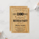 Invitación de cumpleaños número 100. Tipografía. ¡Salud por 100 años! Fondo de madera rústica. Cumpleaños de adulto. Cumpleaños de hombre o mujer. Invitación de cumpleaños para niños, niñas, adolescentes o jóvenes. 13, 15, 16, 18, 20, 21, 30, 40, 50, 60, 70, 80, 90, 100. Cualquier edad. Para una mayor personalización, haga clic en el botón "Personalizar" y utilice nuestra herramienta de diseño para modificar esta plantilla.