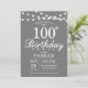 Invitación de cumpleaños número 100 con luces de cuerda. Fondo gris. Cumpleaños de hombre o mujer. 13 15 16 18 20 21 30 40 50 60 70 80 90 100, cualquier edad. Para personalizar aún más, haga clic en el botón "Personalizar" y use nuestra herramienta de diseño para modificar esta plantilla.