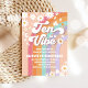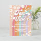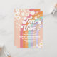 ¡Celebra el momento más importante de tu hijo con esta vibrante invitación de cumpleaños retro arcoíris! Con tonos pastel, margaritas, mariposas, signos de paz y fuentes juguetonas, este diseño genial establece el tono perfecto para una fiesta llena de diversión. Ideal para los cumpleaños de los niños, esta invitación alegre combina la nostalgia de los 70 con un encanto moderno, lo que la convierte en una excelente opción para una celebración inolvidable. Personaliza con los detalles de tu fiesta y difunde paz, amor y alegría a todos tus invitados.