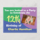 invitación para una fiesta de cumpleaños especial con nombre y número de años. Invitación de fiesta para un niño de 12 años. Agregue su propia foto y cambie el tamaño según sea necesario.