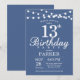 Invitación a los 13 años con String Lights. Fondo Azul.Cumpleaños de niños. Chico o Chica Lady Bday Invite. 13. 15. 16. 18. 20. 21. 30. 40. 50. 60. 70. 80. 90. 100. Cualquier edad.