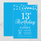 Invitación de cumpleaños número 13 con luces de cuerda. Fondo azul. Cumpleaños de niños. Invitación de cumpleaños para hombre o mujer. 13 15 16 18 20 21 30 40 50 60 70 80 90 100, cualquier edad. Para una mayor personalización, haga clic en el botón "Personalizar" y utilice nuestra herramienta de diseño para modificar esta plantilla.