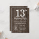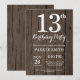 Invitación rústica de 13 años. Fondo De Madera Rústica. Vintage Retro Cumpleaños.Cumpleaños de niños. Invitar a niño o Chica Bday. 13. 15. 16. 18. 20. 21. 30. 40. 50. 60. 70. 80. 90. 100. Cualquier edad.