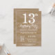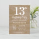 Invitación de cumpleaños número 13 rústica