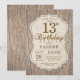 Invitación de cumpleaños número 13 rústica con fondo de madera. Fiesta de cumpleaños de adulto. Invitación de cumpleaños de hombre. 13 16 18 20 21 30 40 50 60 70 80 90 100, cualquier edad. Para una mayor personalización, haga clic en el botón "Personalízalo" y use nuestra herramienta de diseño para modificar esta plantilla.