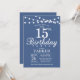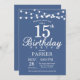 15a Invitación de cumpleaños con String Lights. Fondo Azul.Cumpleaños de niños. Invite el día festivo del niño o Chica Lady Elegant. 13. 15. 16. 18. 20. 21. 30. 40. 50. 60. 70. 80. 90. 100. Cualquier edad.