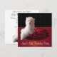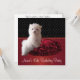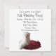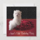Invitación de fiesta de cumpleaños número 15 de cachorro maltés de lunares rojos, negros y blancos.