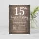 Invitación de cumpleaños número 15 a la sorpresa rústica. Fondo De Madera Rústica. Vintage Retro Cumpleaños. Cumpleaños de niños. Invitar a un niño o Chica. 13.º 15.º 16.º 18.º 20.21.30.40.50.60.70.80.90.100, cualquier edad. Para una mayor personalización, haga clic en el botón "Personalizar" y utilice nuestra herramienta de diseño para modificar esta plantilla.