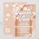 Celebra con estilo con esta invitación de cumpleaños número 15 con flores retro que presenta franjas curvas y divertidas en rosa, melocotón y marrón. Las margaritas juguetonas, las mariposas, las señales de paz, las estrellas y las lunas crean un ambiente hippie divertido perfecto para adolescentes que aman el encanto vintage. La tipografía en negrita resalta los detalles de la fiesta, haciéndola fácil de leer y llamativa. Este diseño personalizable es ideal para celebraciones de quince años dulces, asegurando que los invitados sientan la paz, el amor y la diversión desde la primera mirada.