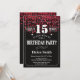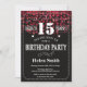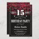 Invitación al cumpleaños número 15 del Purpurina Rojo. Tipografía Blanca. Fondo del tablero blanco y negro.Cumpleaños de niños. Cumpleaños de hombres o mujeres. Invite a un niño o Chica Lady Teen Teenage Bday. 13a 15a 16a 18a 20a 30a 40a 50a 60a 70a 80a 90a 100a. Cualquier edad.