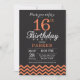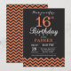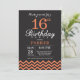Invitación de cumpleaños número 16 con Chevron negro y coral. Pizarra. Cumpleaños de niños. Invitación de cumpleaños para niño o niña. Para una mayor personalización, haga clic en el botón "Personalizar" y utilice nuestra herramienta de diseño para modificar esta plantilla.
