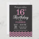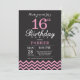 Invitación de cumpleaños número 16 con Chevron negro y rosa. Pizarra. Cumpleaños infantil. Invitación de cumpleaños para niño o niña. Para personalizar aún más, haga clic en el botón "Personalizar" y use nuestra herramienta de diseño para modificar esta plantilla.