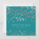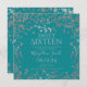 Diseño de invitación elegante para "cumpleaños número 16" con confeti de lámina de plata y texto personalizado con nombre y detalles.