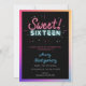 ¡Celebra tu día especial con estilo con nuestra invitación electrónica para Sweet 16! Nuestro diseño inspirado en neón seguro hará una declaración con sus tonos de rosa y negro. Es la forma perfecta de hacer saber a todos que estás cumpliendo 16 años.