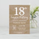 Invitación de cumpleaños número 18 de la empresa Rustic Surprise. Fondo De Madera Rústica. Vintage Retro Cumpleaños. Cumpleaños de adultos. Invitación de cumpleaños de hombres o mujeres. 13.º 15.º 16.º 18.º 20.21.30.40.50.60.70.80.90.100, cualquier edad. Para una mayor personalización, haga clic en el botón "Personalizar" y utilice nuestra herramienta de diseño para modificar esta plantilla.