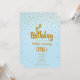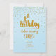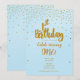 Invitación de cumpleaños número 1 azul claro y dorado con confeti. Puedes organizarlo como quieras.