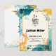 Celebra el primer cumpleaños de tu pequeño con esta encantadora invitación que presenta un adorable tema de animales del bosque. El diseño combina criaturas juguetonas del bosque con una deliciosa paleta de teal y amarillo, sobre un suave fondo de acuarela. Perfecta para una fiesta de primer cumpleaños inspirada en la naturaleza o con un tema de aventura, esta invitación ofrece amplio espacio para todos los detalles importantes, lo que la convierte en una opción ideal para una celebración memorable.