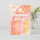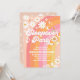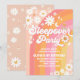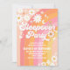 Celebra el hito de tus pequeños con esta invitación de fiesta de pijamas retro que presenta un vibrante fondo de arcoíris, margaritas alegres, signos de paz, estrellas y acentos boho juguetones. Perfecta para el primer cumpleaños de una niña, este diseño colorido marca el tono para una celebración divertida y memorable. Personaliza con los detalles de tu fiesta y crea un recuerdo único que encantará a tus invitados. Ideal para fiestas de cumpleaños con temática trendy, groovy y bohemio.