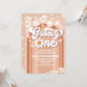 Celebra el hito de tus pequeños con esta invitación de cumpleaños número uno con una margarita retro genial. Con un arcoíris de durazno y rosa, margaritas juguetonas, mariposas y estrellas caprichosas, este diseño alegre establece el ambiente perfecto para una fiesta temática de paz, amor y diversión. El titular audaz "Groovy One" añade un toque encantador, lo que lo hace ideal para celebraciones inspiradas en el pasado. Personaliza con los detalles de tu fiesta y crea un recuerdo que tus invitados adorarán. Perfecto para temas de cumpleaños boho, hippie o flower power.