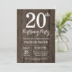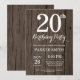Invitación de cumpleaños número 20 rústica. Fondo de madera rústica. Cumpleaños retro vintage. Cumpleaños de adulto. Invitación de cumpleaños para hombres o mujeres. 13 15 16 18 20 21 30 40 50 60 70 80 90 100, cualquier edad. Para una mayor personalización, haga clic en el botón "Personalízalo" y use nuestra herramienta de diseño para modificar esta plantilla.