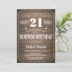 Invitación de cumpleaños 21 de Rustic Surprise con antecedentes de madera rústica. Retro Vintage. Cumpleaños de adultos. Cumpleaños de hombres o mujeres. Invite a un niño o Chica Lady Teen Teenage Bday. 13a 15a 16a 18a 20a 30a 40a 50a 60a 70a 80a 90a 100a. Cualquier edad.
