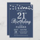 Invitación de cumpleaños 21 con String Lights. Fondo Azul. Invitar a los hombres o mujeres Lady Elegant. 13. 15. 16. 18. 20. 21. 30. 40. 50. 60. 70. 80. 90. 100. Cualquier edad.